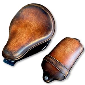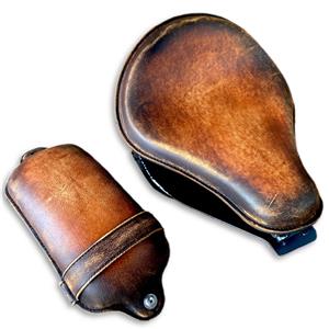 - This kit includes a 13x15" Brown On Brown Distressed Leather Double stuffed seat and p-pad and Spring solo seat mounting kit.
