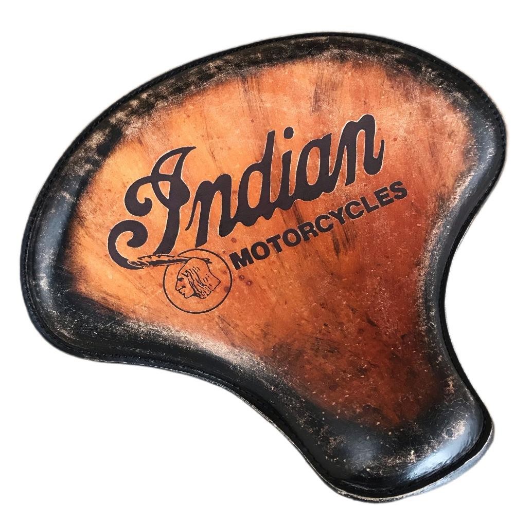 2022-2025 Indian Dark Hose Bobber 15x14x1" Antique Brown Distressed Leather with Indian Tattoo, Tractor Spring Seat And Conversion Mounting Kit with 3" Black Powder Coated Coil Springs By Mother Road...