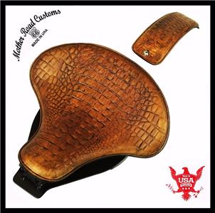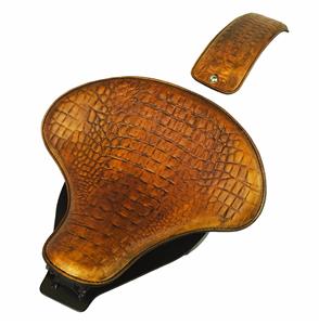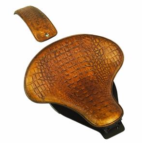 • This set includes a 15x14" Antique Tan Alligator Embossed Leather seat, passenger pad and Spring solo kit.