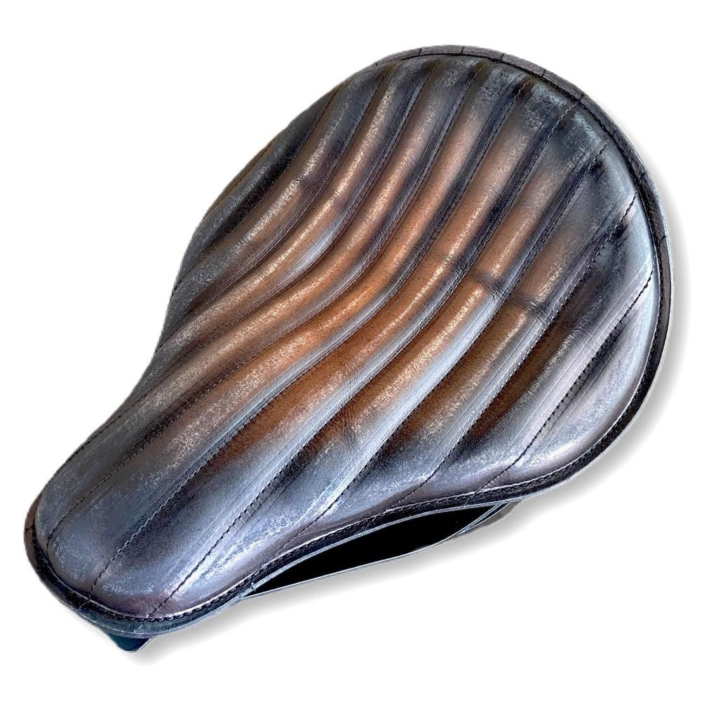 2000-2017 Harley Softail 13x15"Antique Brown Distressed Tuck and Roll Stitched Veg Leather Tractor Spring Seat and Conversion Mounting Kit with 3" Black Powder Coated Coil Springs By Mother Road Customs...