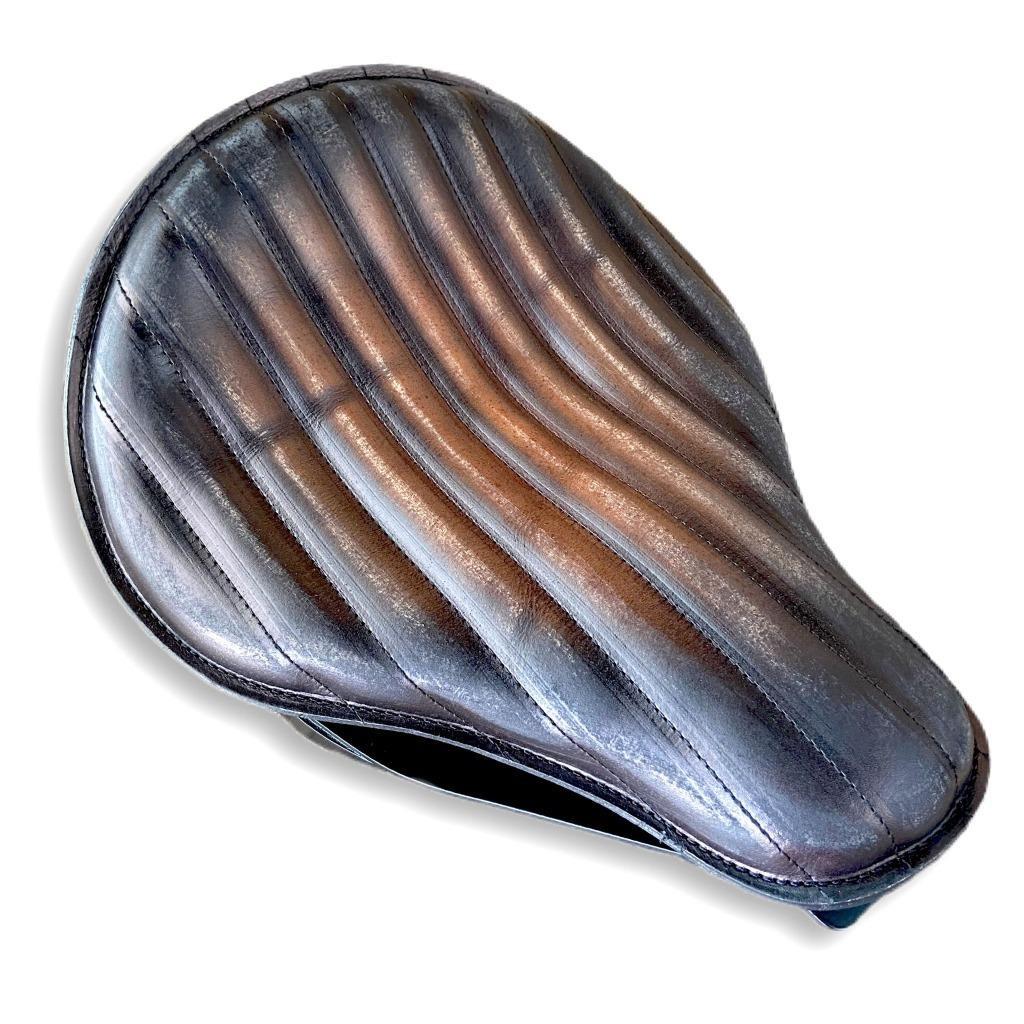2000-2017 Harley Softail 11x16" Antique Brown Oak Leaf Leather Spring Seat and Conversion Mounting Kit with 3" Copper Coil Springs By Mother Road Customs MADE IN THE USA This is...
